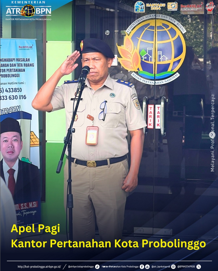 Pada Hari Senin Tanggal 13 Januari 2025 seluruh pegawai Kantor Pertanahan Kota Probolinggo melaksanakan Apel Pagi yang rutin diadakan pada setiap awal minggu.