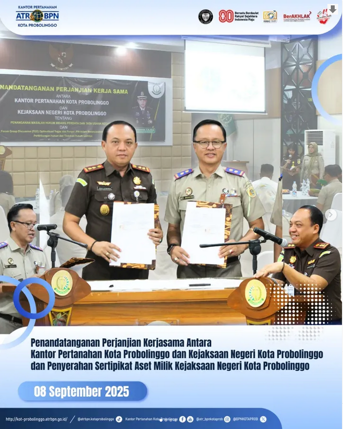 Pada Hari Senin Tanggal 08 September 2025 Kantor Pertanahan Kota Probolinggo melakukan Perjanjian Kerjasama dengan Kejaksaan Negeri Kota Probolinggo