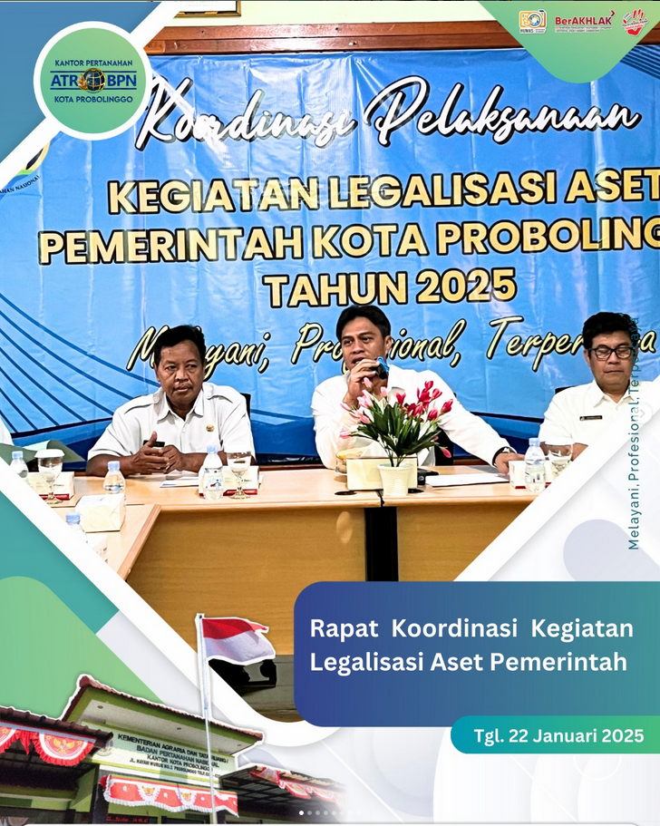 Pada Hari Rabu Tanggal 22 Januari 2025 Kantor Pertanahan Kota Probolinggo mengadakan Rapat Koordinasi Pelaksanaan Kegiatan Legalisasi Aset Pemerintah Kota Probolinggo Tahun 2025.