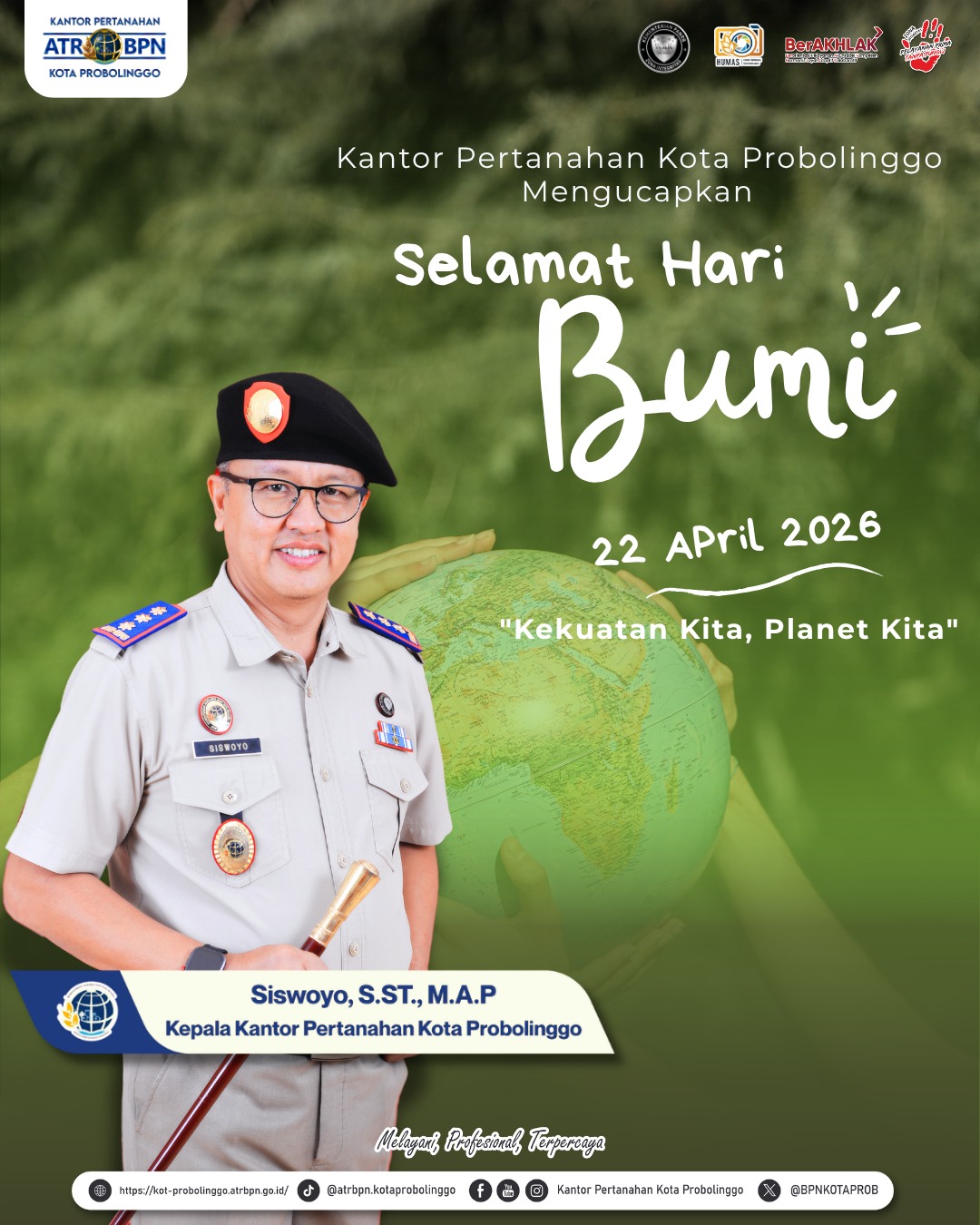 Segenap Jajaran Kantor Pertanahan Kota Probolinggo mengucapkan Selamat memperingati Hari Bumi, 22 April 2026 🌍