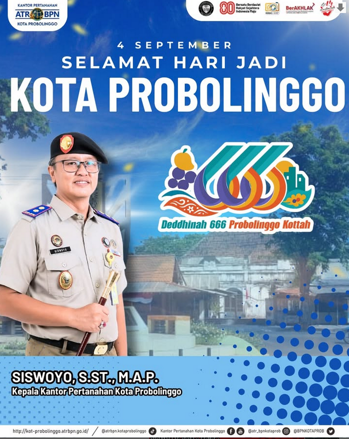 Keluarga Besar Kantor Pertanahan Kota Probolinggo mengucapkan Selamat Hari Jadi Kota Probolinggo Ke – 666 Tahun