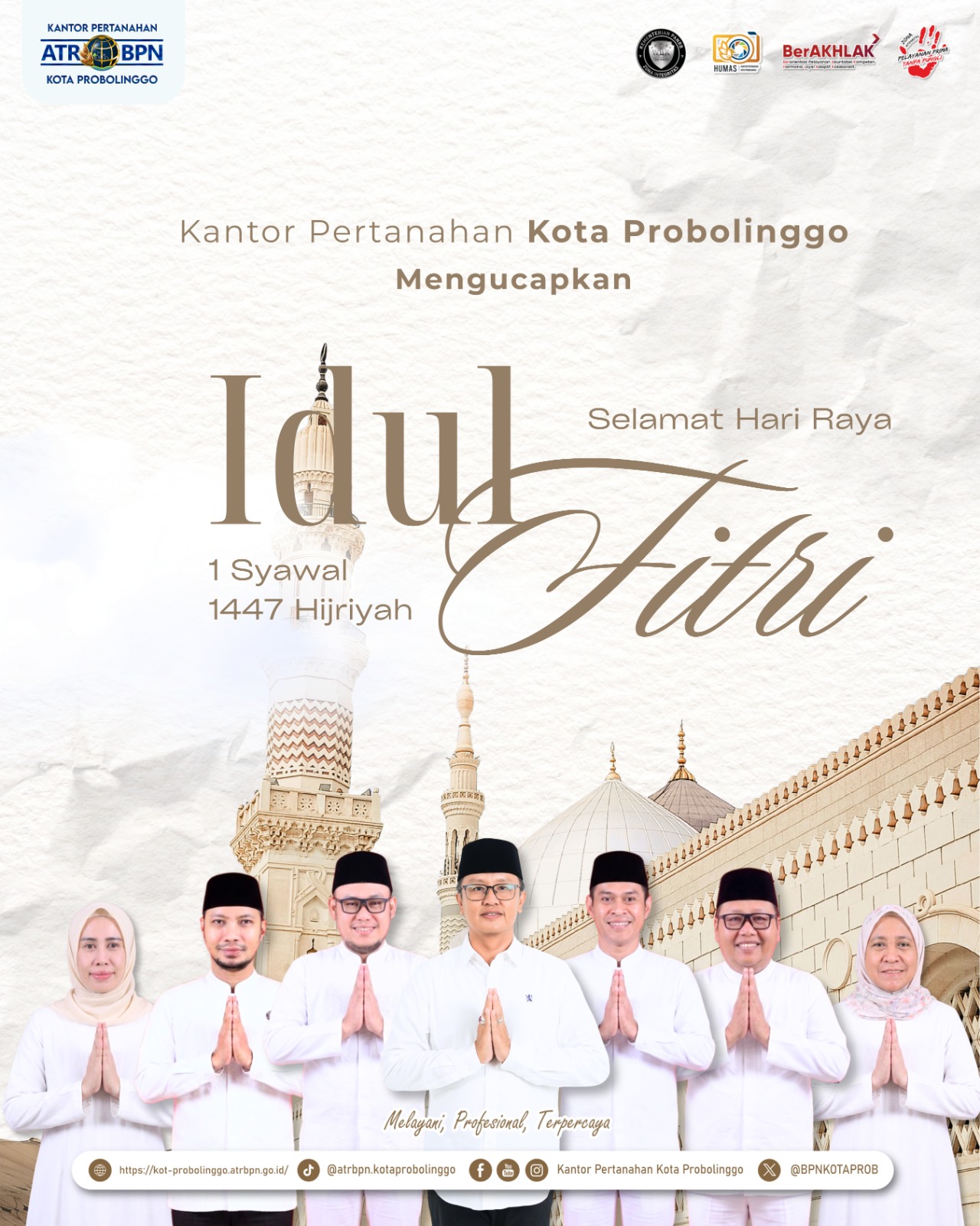 Segenap jajaran Kantor Pertanahan Kota Probolinggo mengucapkan Selamat Hari Raya Idulfitri 1447 Hijriah, Taqabbalallahu Minna Wa Minkum 🙏🏻