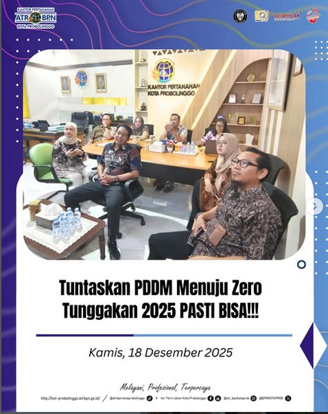 Dalam rangka mendukung visi misi Kementerian ATR/BPN untuk memberikan pelayanan publik yang cepat dan transparan, maka Kantor Pertanahan Kota Probolinggo siap dan terus berkomitmen dalam mewujudkan zero tunggakan menjelang akhir tahun 2025